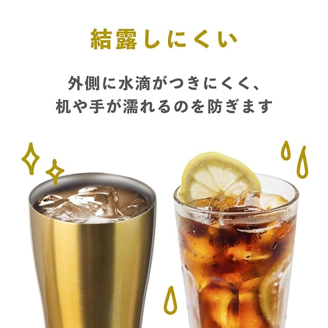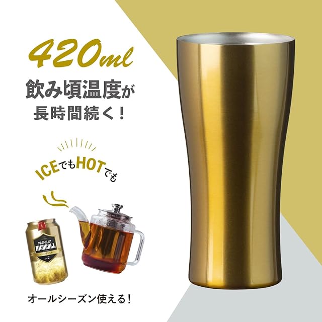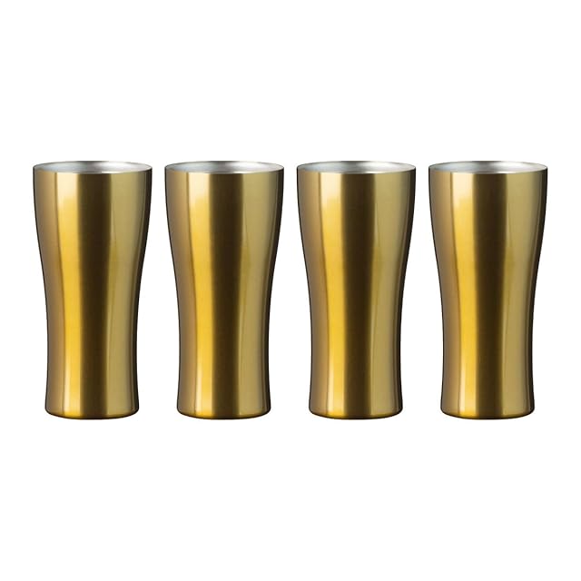 アトラス 保温保冷 ステンレス タンブラー 420ml 4個セット 軽量 ゴールド 真空断熱 お酒 ビール ハイボール AST-420GO-4P