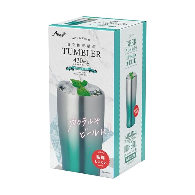 商品名:Atlas アトラス 保温保冷 タンブラー 430ml グラデーション ソーダブルー 2個 ペア真空断熱 ハイボール ASTG-433SB2P