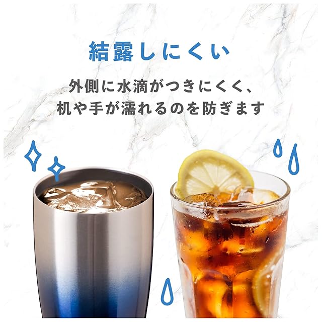 冷たいものを入れても結露しにくく、温かいものを入れたときは外側が熱くなりません。
