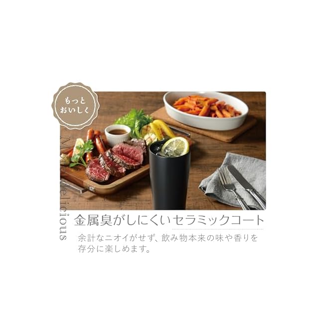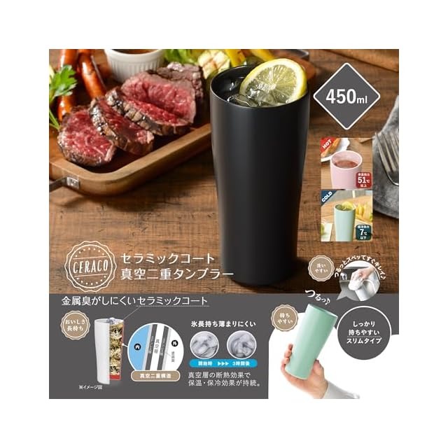 商品名:カクセー(Kakusee) タンブラー チャコール 450ml 真空二重構造 保温 保冷 スリムタイプ セラミックコート 洗いやすい セラコ CE-01C