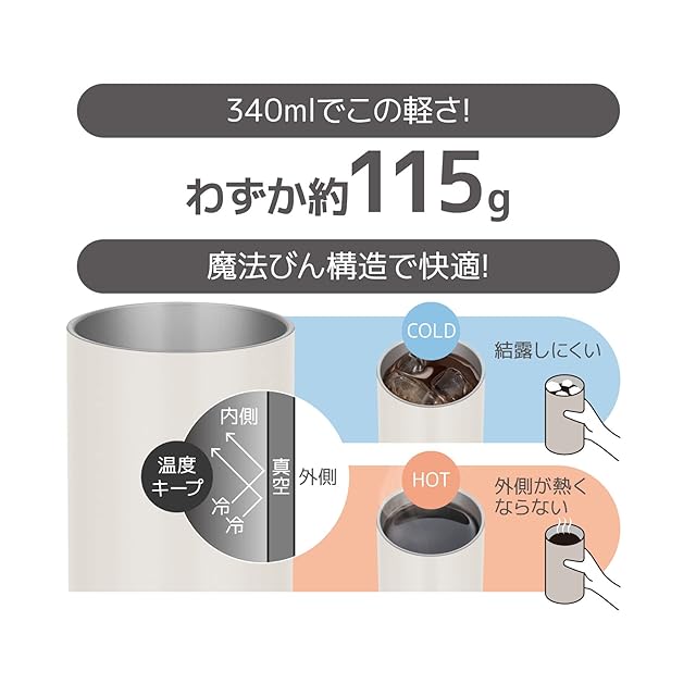 【軽量モデル】サーモス 真空断熱タンブラー 340ml ストーンホワイト JDW-340C STW
