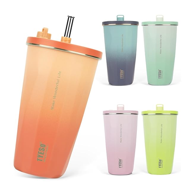 【SNSで話題】TYESO タンブラー ストロー付き 600ml ステンレス 蓋付き 真空断熱 保温 保冷 アウトドア 持ち運び便利 直飲み 漏れない 大容量 多色 トラベル 2025年アップグレード版