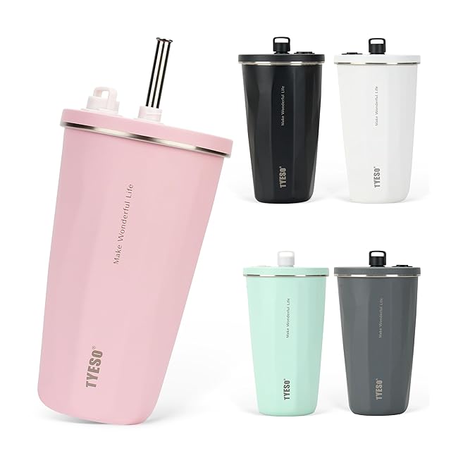 【SNSで話題】TYESO タンブラー ストロー付き 600ml ステンレス 蓋付き 真空断熱 保温 保冷 アウトドア 持ち運び便利 直飲み 漏れない 大容量 多色 トラベル 2025年アップグレード版