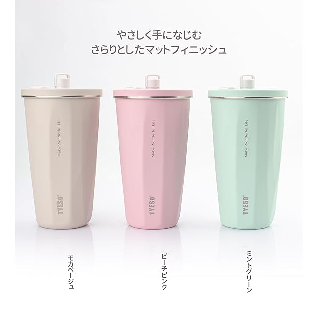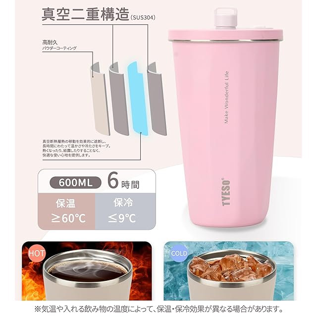 商品名:【SNSで話題】TYESO タンブラー ストロー付き 600ml ステンレス 蓋付き 真空断熱 保温 保冷 アウトドア 持ち運び便利 直飲み 漏れない 大容量 多色 トラベル 2025年アップグレード版
