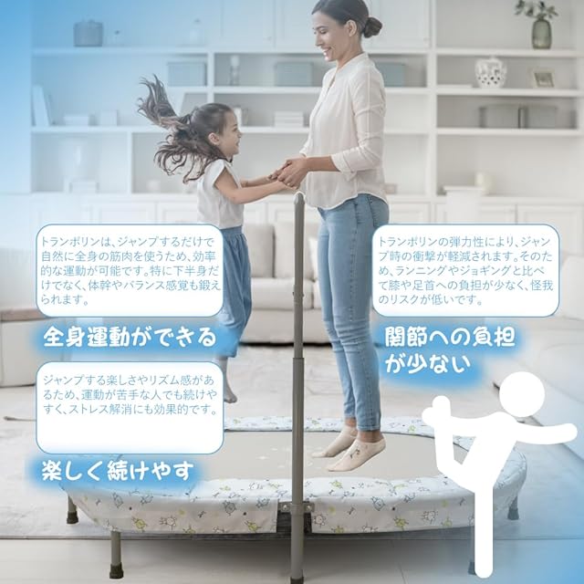 【安定性&静音設計】6本の脚部には衝撃を吸収する高耐久ラバーゴムを使用しています。ジャンプすると安定性が確保され、上下にスムーズにジャンプできます。さまざまな方法でジャンプを楽しめます。