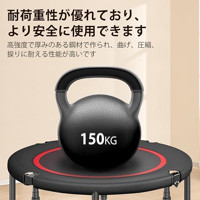 頑丈で耐久性があります:このトランポリンは102センチメートルを持つ、150キログラムの荷重能力を考慮した設計になっており、安定性と耐久性を確保しています。ユーザーは、構造の安定性を心配することなく、跳躍を安心して楽しむことができます。