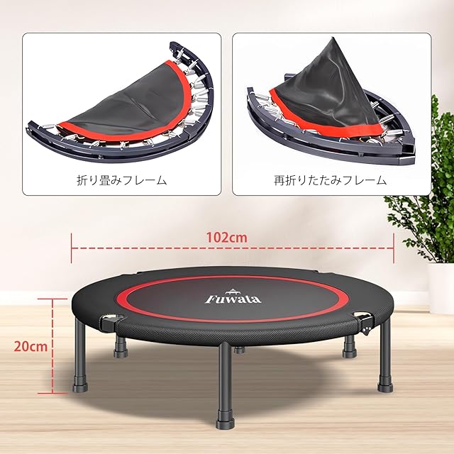 Fuwata トランポリン 室内用 大人用 子供用 大型102cm 耐荷重150kg 静音 折りたたみ ダイエット 家庭用 6本脚