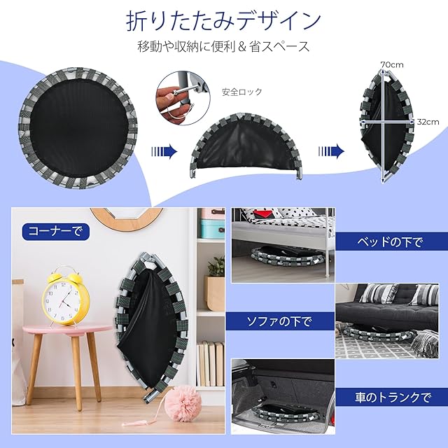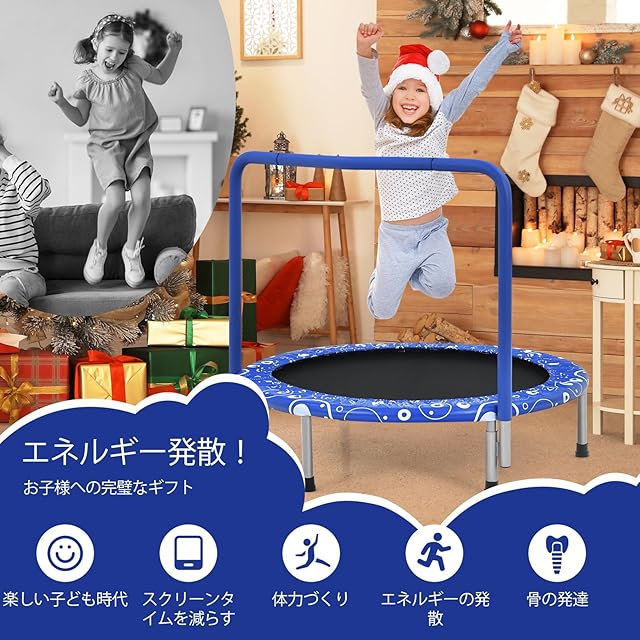 商品名:Giantex トランポリン 子供 大人兼用 耐荷重150kg 6本脚 92x92cm 安全ゴムバンド式 折りたたみ式 手すり調節可能 静音 高反発 とらんぽりん 室内 屋外 ダイエット 家庭用 トレーニング 幼稚園 ダイエット お祝い ギフト プレゼント(ブルー)