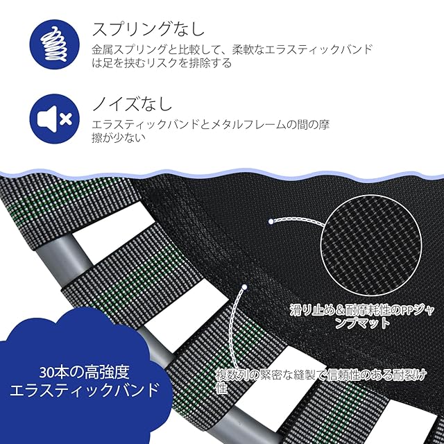 高弾力性ジャンプマットでエネルギーを発散し、血行促進や骨の成長をサポートします。