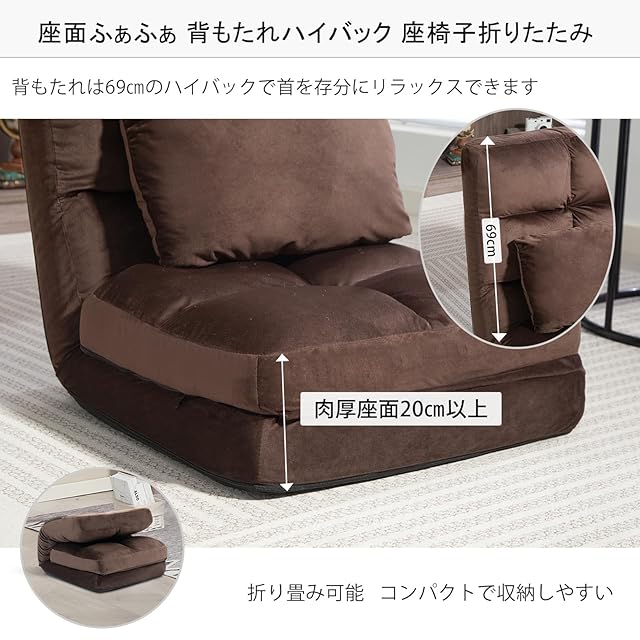 商品名:DeeLyan 座椅子 リクライニング コンパクト 折りたたみ ハイバック 座椅子ソファー フロアチェア ソファベッド 寝れる椅子 腰が痛くならない 1人掛け 寝れる クッション付き