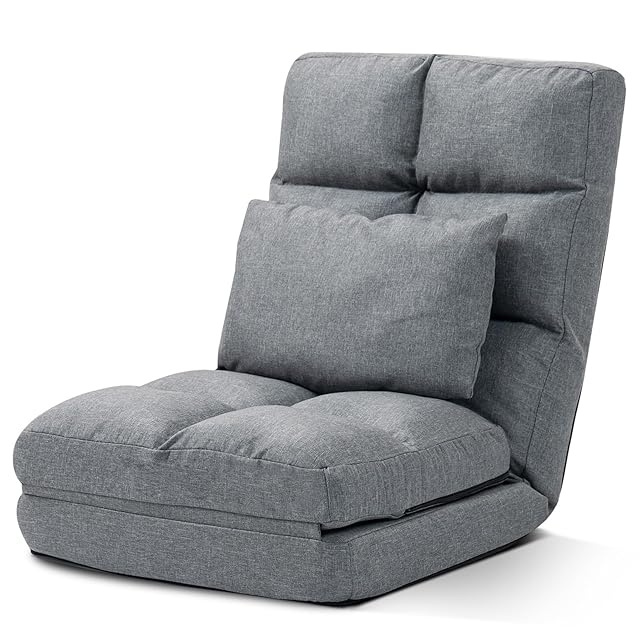 DeeLyan 座椅子 リクライニング コンパクト 折りたたみ ハイバック 座椅子ソファー フロアチェア ソファベッド 寝れる椅子 腰が痛くならない 1人掛け 寝れる クッション付き