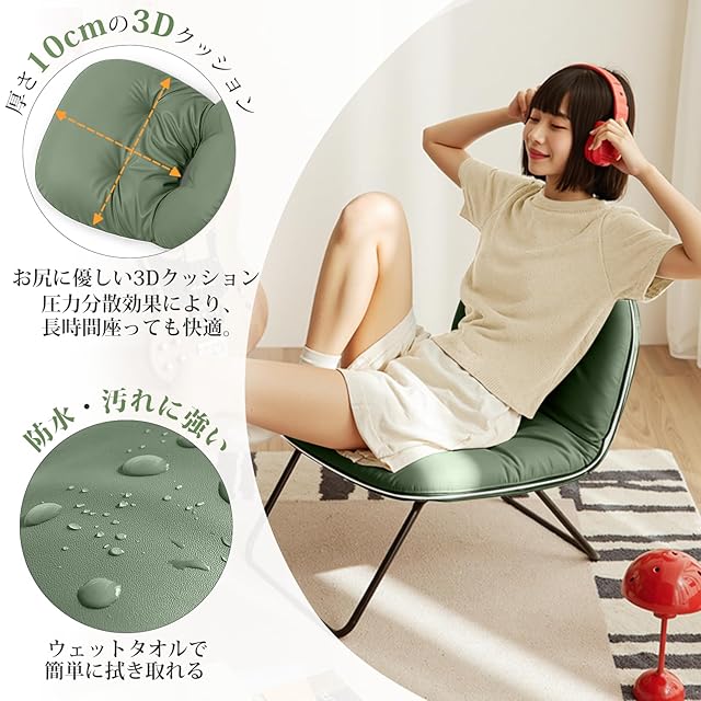 商品名:MAZOT 折りたたみ式 座椅子 椅子 2 種類の座り方コンパクト 組立なし 片手で持てる 軽量 収納便利 高・低2段調節 ソファーのような快適さ 革製 汚れに強く 耐久性あり 可愛い オシャレ モダン シンプル リビング アウトドア キャンプ グリーン