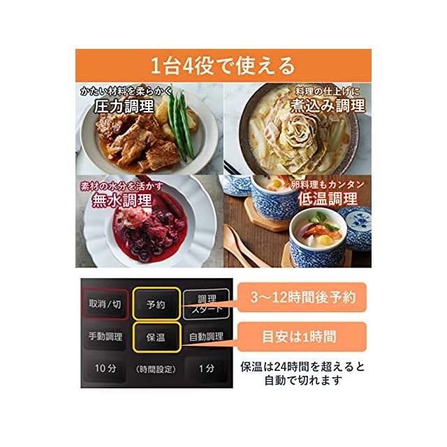 商品名:パナソニック 電気圧力鍋 3L 圧力/低温/無水/煮込/自動調理 レシピブック付 温度過昇防止機能 SR-MP300-K