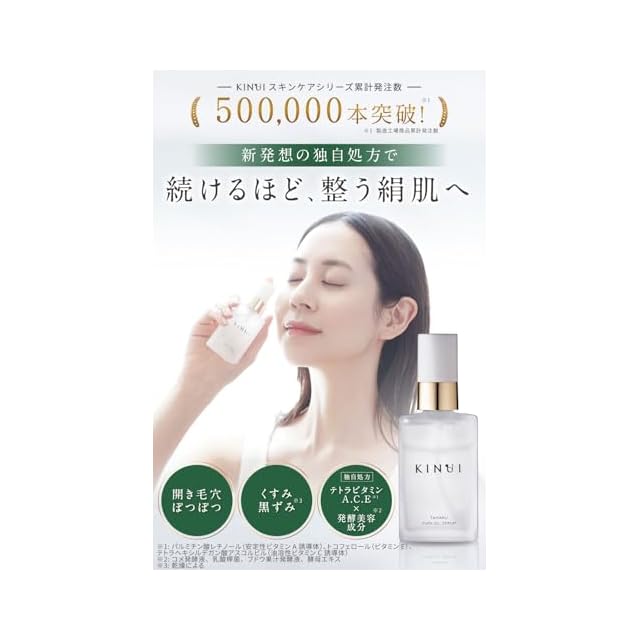 商品名:KINUI 導入美容液 タマヌピュアオイルセラム 30ml ピーリング 美容液 ブースター 導入化粧水 タマヌオイル レチノール ビタミンC誘導体 ビタミンE 発酵美容成分 海洋深層水