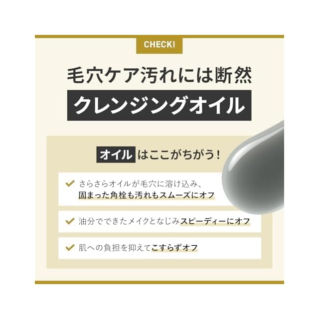 炭・吸着泥などの4種の毛穴対策成分を配合した、毛穴特化型の黒のマイルドクレンジング オイル。サラリとした黒いオイルが毛穴にとけこみ、角栓や黒ずみも溶かしだして一掃。超つるん!なすっぴんに。<br> ●濡れた手でもOK! ●どんなメイクもこすらずするん! ●毛穴汚れ・黒ずみ・角栓オフ<br>