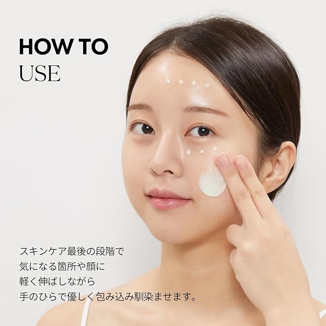 ☘【使用方法】スキンケア最後の段階で気になる箇所や顔に軽く伸ばしながら手のひらで優しく包み込み馴染ませる