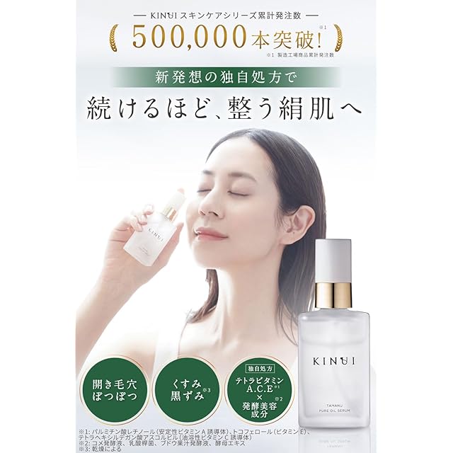 KINUI 導入美容液 タマヌピュアオイルセラム 30ml 3本 ピーリング 美容液 ブースター 導入化粧水 タマヌオイル レチノール ビタミンC誘導体 ビタミンE 発酵美容成分 海洋深層水