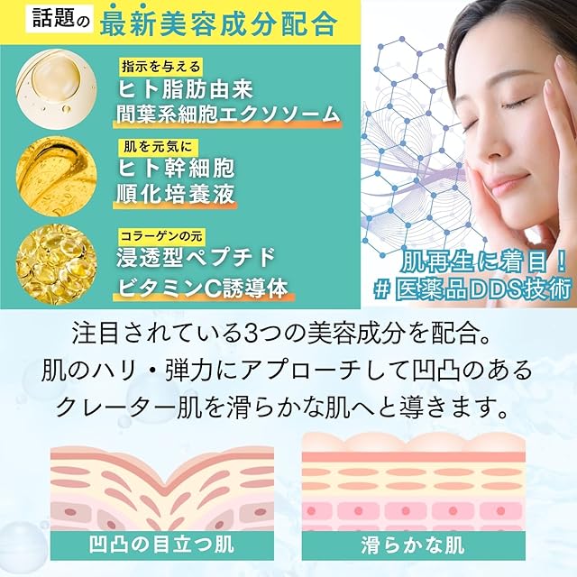 商品名:ドクターRe9 クレーター肌ケア用 ベルクイーンエクソピール 導入 美容液 (跡/痕/凹凸/ボコボコ肌/肌荒れ 対策) PPP3 ・ エクソソーム ・ ヒト幹細胞 ・ ペプチド ビタミンC誘導体 配合 (ブースター ピーリング 無添加 低刺激 アルコールフリー) 45ml / 30日分 メンズ レディース (3点)