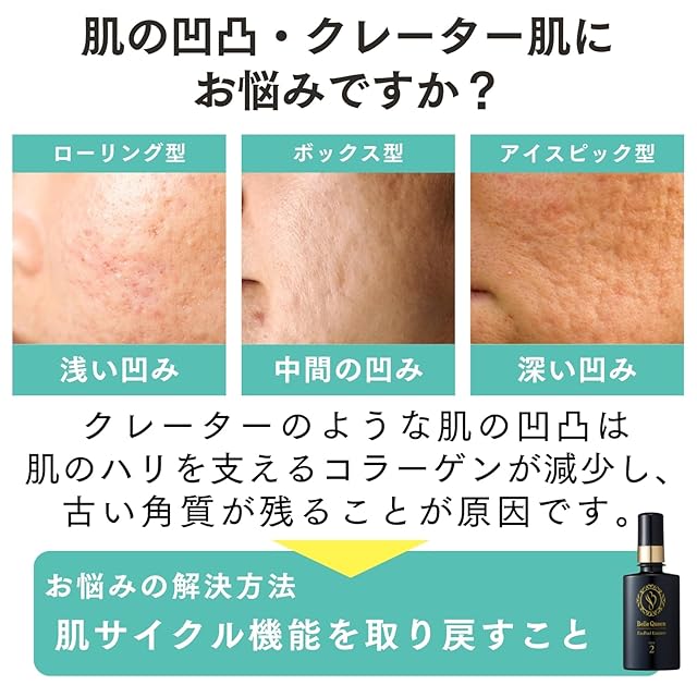 【凹凸の目立つ肌をケア】月面のようにボコボコしたお肌の原因であるターンオーバーの乱れと古い角質の蓄積をベルクイーンエクソピールに配合された独自成分が徹底ケア。