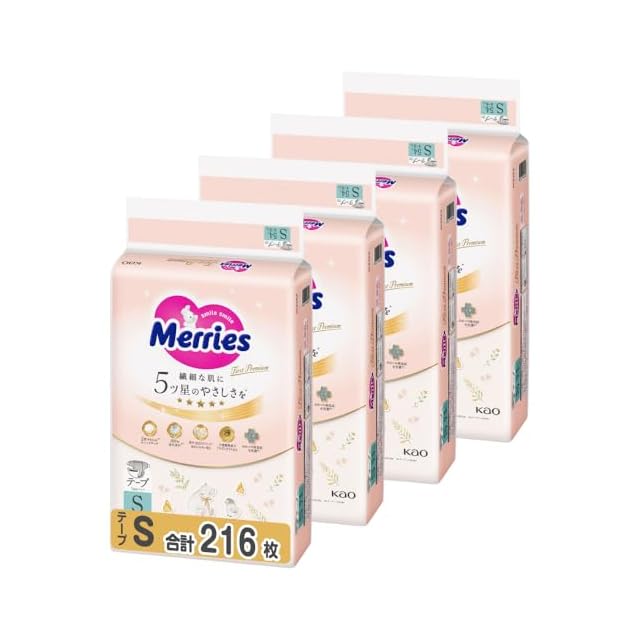 商品名:メリーズ 【テープ Sサイズ】 ファーストプレミアム(4~8kg) 216枚 (54枚×4) [ケース品] 【.co.jp限定】