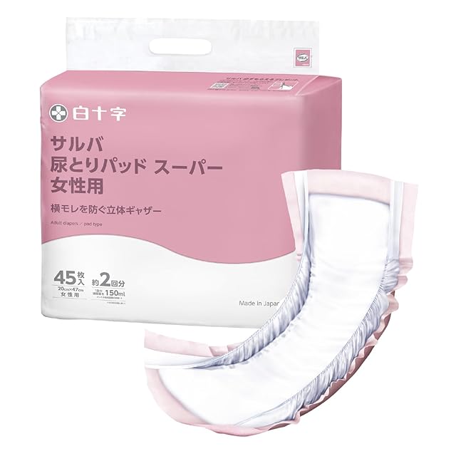 商品名:サルバ 白十字 尿とりパッドスーパー 女性用 大人用おむつ 2回吸収 45枚【ズレ防止テープ採用でおむつにしっかり固定】【.co.jp限定】