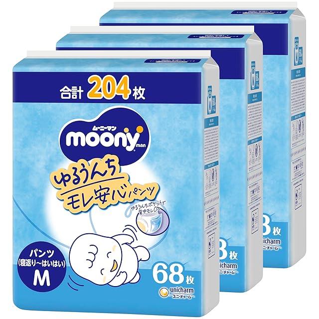 【パンツ Mサイズ おすわり・はいはい~】ムーニーマン オムツ [ケース品] 【.co.jp限定】 白 (5~10kg)204枚(68枚×3)
