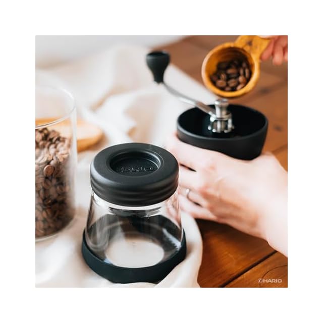 【便利なフタ付き】粉受け用のフタが付属しており、そのままコーヒー粉の保存容器としてご使用いただけます。その際ミル本体は、フタの上に重ねられるのでスペースを取りません。