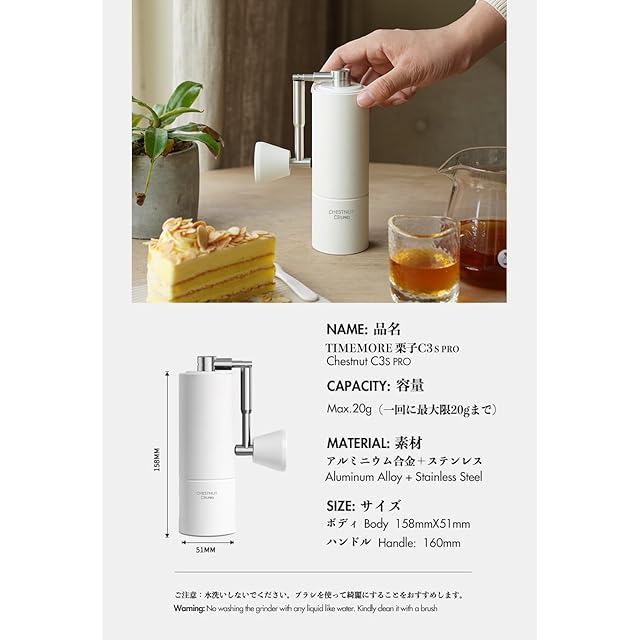 商品名:TIMEMORE タイムモア 栗子C3sPro 手挽きコーヒーミル 手回し式 ハンドミル 粗さ調整可能 省力性 coffee grinder 一年 (C3sPro-ホワイト)