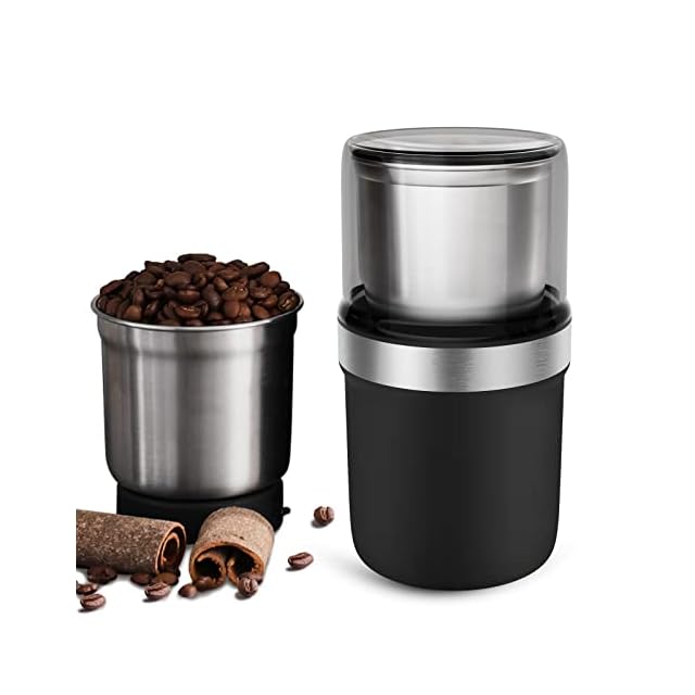 BESROY コーヒーミル 電動 カッター コーヒーミル 電動コーヒーミル 粉末 コーヒー豆 ひき機 水洗い可能 豆挽き/緑茶/山椒/唐辛子/胡椒/山椒/調味料/穀物を挽く 一台多役 掃除ブラシ付 お手入れ簡単