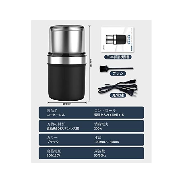 商品名:BESROY コーヒーミル 電動 カッター コーヒーミル 電動コーヒーミル 粉末 コーヒー豆 ひき機 水洗い可能 豆挽き/緑茶/山椒/唐辛子/胡椒/山椒/調味料/穀物を挽く 一台多役 掃除ブラシ付 お手入れ簡単