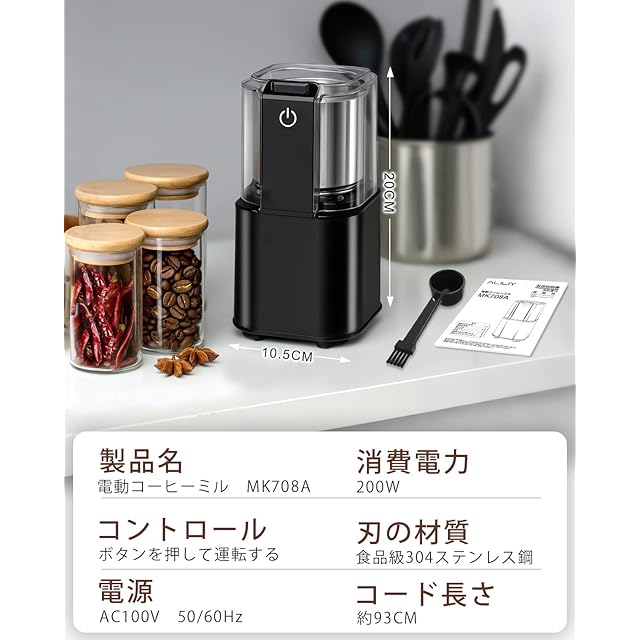 商品名:コーヒーミル 電動 カッター コーヒー電動ミル【2025新登場】 電動コーヒーミル コーヒーグラインダー 電動グラインダー 粉末 コーヒー豆挽き器 豆挽き/緑茶/唐辛子/胡椒/山椒/調味料/穀物を挽く 無段階粒度調整 一台多役 掃除ブラシ付 お手入れ簡単 水洗い可能 キッチン/オフィス/リビングルーム 誕生日 プレゼント