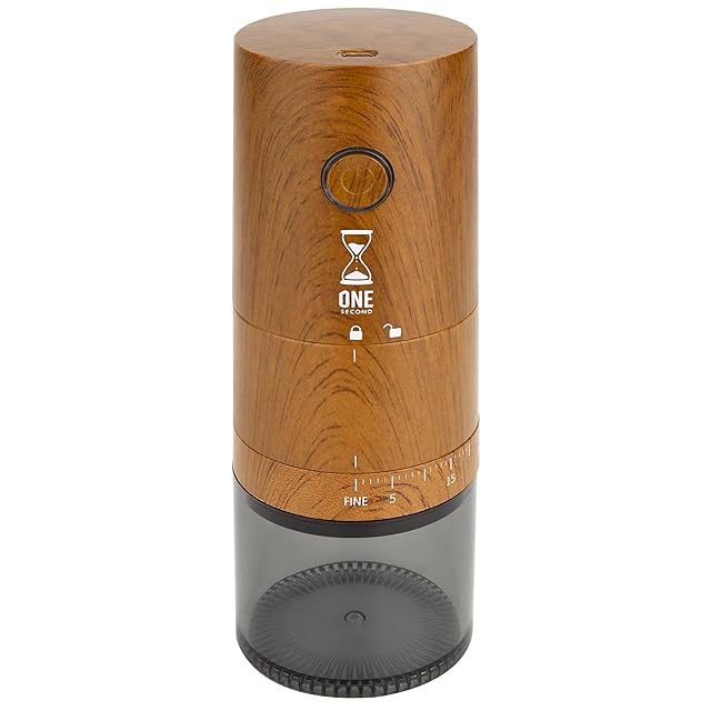 【お手軽カフェ気分】 ワンセカンド 電動コーヒーミル 39段階 臼式 自動停止 コードレス 水洗い可能 木目調 ONE SECOND
