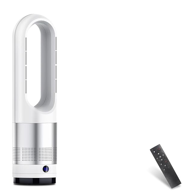 【2025新型冷暖兼用・羽根なし】扇風機 タワーファン 8段階送風&3段階温風切替 左右100°首振り 9Hタイマー機能 温風 冷風 広範囲送風 羽根なし型 リビング扇風機 強力送風 大風量 リモコン付 暖風送風 ファンヒーター 過熱保護 転倒安全装置 即暖 省エネ 節電 子供部屋/リビング/寝室/書斎/キッチン/脱衣所/洗面所/トイレ/オフィス用 日本語説明書 PSE認証済み (ホワイト)