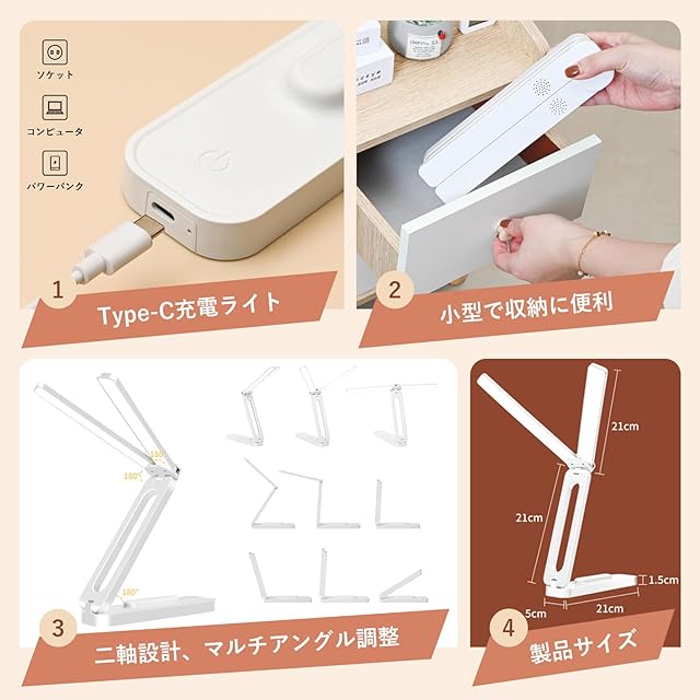 商品名:SEKIDAR デスクライト 折りたたみ 充電式 コードレス 読書ライト 目に優しい LEDライト 3色調整・無段階調光 4000mAh 寝室/仕事/旅行用 携帯便利
