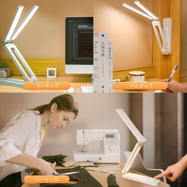 【 広範囲照明 & 多用途対応】180度回転可能な2つのランプヘッドで、広範囲を均一に照らします。読書、学習、手工芸、絵画など、さまざまなシーンで活躍。仕事や勉強に最適なだけでなく、緊急時の照明としても頼れる存在です。