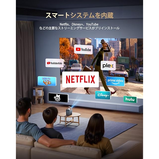 【より高速なWiFi 6&HDMI CEC/ARC&幅広い互換性】netflix プロジェクターはHDMI ARC/CEC技術により、P61Pro プロジェクターはホームシアター環境にシームレスに統合されます。WiFi6の飛躍的な進化により、WiFi接続速度が約40%向上。iOS/Androidスマートフォン/タブレットとのワイヤレス接続を実現し、お気に入りの映画、スポーツ中継やオンラインゲームなどで滑らかな映像を提供、究極のエンターテインメント体験をもたらします。この短焦点プロジェクターはHDMI、USB、3.5mmオーディオ端子も装備し、TVスティック/ノートパソコン/USBメモリ/Switch/スピーカーなどの外部機器を簡単に接続可能。シームレスな互換性の新時代へようこそ!