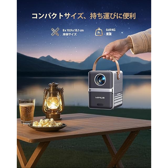 【ネイティブ1080P、4K対応&680ANSI高輝度&小型ポータブル】 WIMIUS P61Pro プロジェクター 4Kは、1920*1080Pのネイティブ解像度と4Kデコード技術により、各ピクセルを鮮明に再現します。680 ANSIルーメンの明るさ、18000:1の超高コントラスト比、96% NTSC色域、60Hz駆動周波数により、特に鮮やかで滑らかな映画鑑賞体験を提供します。P61Pro モバイルプロジェクターは市販のプロジェクター 小型よりもさらにコンパクトで、女性の手のひらサイズです。ポータブルに優れた軽量設計で、お子様でも簡単に持ち運べます。コンパクトなサイズと高輝度画質を両立し、投影画面の鮮明さを完全に保留し、ご自宅で映画館のような映像体験をお楽しみいただけます。