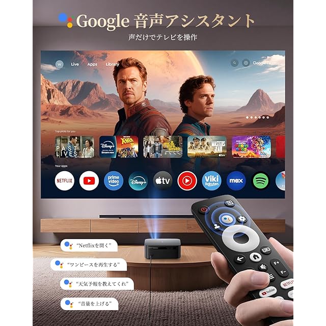 ➤【公式Google TV内蔵&限定キャンペーン】本当にストリーミングのために設計されたスマートプロジェクターが登場!2025 Google TVの公式ライセンスを取得し、Netflix、Disney+、YouTube、Prime Video、ESPNなどの人気ストリーミングアプリに1クリックでアクセスできます。他の非公認Android TVプロジェクターとは異なり、K13スマートプロジェクターにはアプリの制限や複雑なバージョン要件はありません。内蔵アプリのページを見比べれば、その違いが簡単に分かるでしょう。もうテレビスティックを別途購入する必要はありません。内蔵の4Kスティックは定期的にアップデートされ、最新の機能を確保し、安全性と安定性を高めています。限定期間キャンペーン:今ご注文いただくと、「100インチスクリーンまたはブルートゥース・スピーカー」を受け取ることができます!お気軽に説明書の連絡先より弊社までご応募してください。