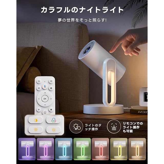 ⑥【ナイトライト搭載、癒しの空間を演出】本体のナイトライトは、タッチ操作やリモコンでON/OFFや明るさ・色の調整が可能。柔らかい光が目に優しく、就寝前の読書や授乳にも最適。寝室や子供部屋の常夜灯としても活躍します。