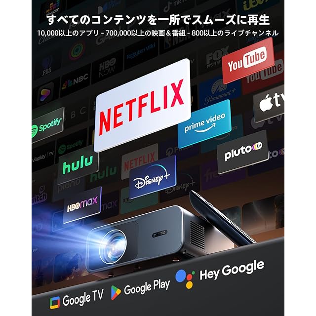 ➤【公式の無制限ストリーミングを内蔵したGoogle TV】WiMiUS G1 プロジェクターは業界初のGoogle公式認証プロジェクターとして、Netflix/Prime Video/Disney+をはじめ、AbemaTVやTVerなど日本主要ストリーーミングサービスの純正アプリを完全サポート。Google Playストアから10,000以上のアプリを直接インストール可能なオールインインワン設計で、TV Stick不要のシンプル設置を実現。ご注意:弊店のぷろじえくたーは、他社の非認証プロジェクター(Linux(純正Netflixiのみ)/AOSP(海賊版)システムベース)で発生する動画中断やクラッシュのリスクを根絶し、電源投入即時に300インインチの大画面で安定したエンターテインメントを提供します。