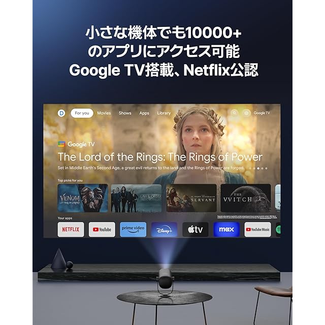 Google TVとライセンスを受けたNetflix:40万本以上の映画や番組が待っています!公式Netflix、簡単なキャスティング、音声コントロールをこのポータブルプロジェクターでお楽しみください。