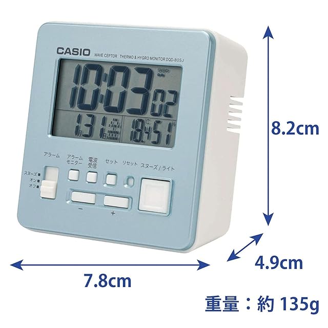 商品名:CASIO(カシオ) 目覚まし時計 電波時計 ブルー 水色 デジタル 小型 スヌーズ ライト DQD-805J-2JF