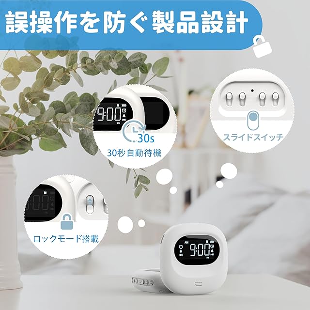 【オールインワン多機能設計】夜の寝室にいても時刻を見えるように、LCDディスプレイにバックライト機能を採用、30秒操作しないと自動的待機モードに入り、省エネと同時に睡眠の邪魔になりません。睡眠中あるいは子供の誤操作を防ぐためにロックモードが配置され、1ボタンで設定でき、万が一ボタンを押しても心配する必要はない。12時間制/24時間制を簡単に切り替え、サマータイム機能も搭載される。
