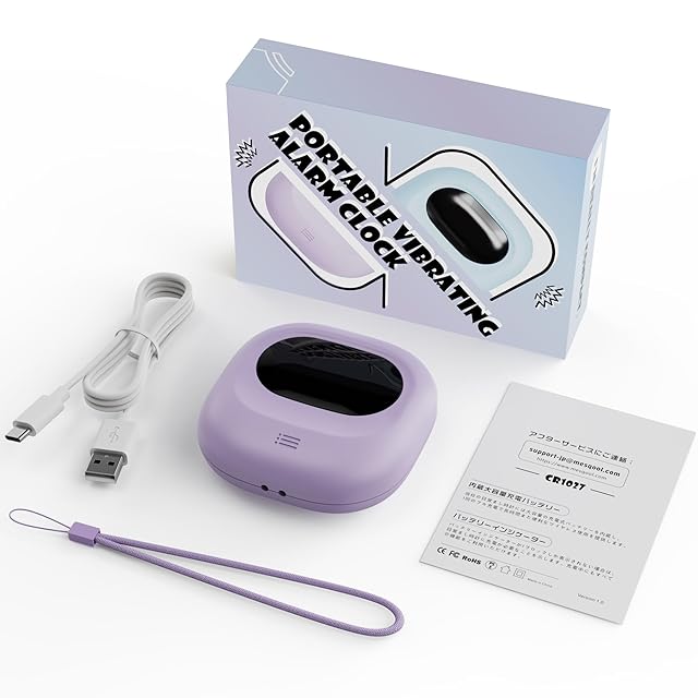 商品名:Mesqool 目覚まし時計 バイブレーション付き 振動式 枕の下用 ダブルアラーム 大容量バッテリー 充電式 バックライト スヌーズ機能付き 絶対起きれる デジタル 振動目覚まし 視覚障害者用時計 寝室/リビングルーム/オフィス適用小型時計 紫