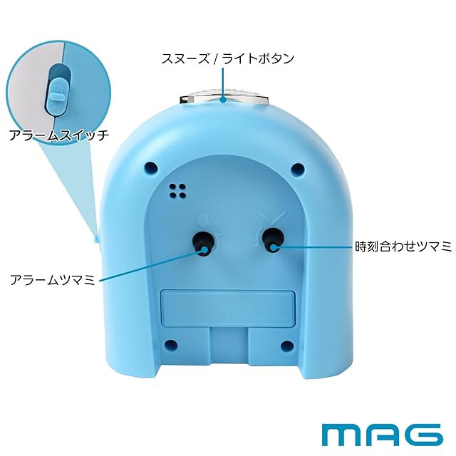 商品名:MAG(マグ) 目覚まし時計 置き時計 アナログ イルカ 動物 かわいい 子供 静音 連続秒針 電子音 アラーム スヌーズ ライト ホワイト ミグレイト T-747 WH-Z ノア精密