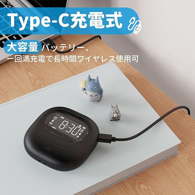【3000mAh内蔵バッテリー】Type-C充電ケーブルを採用、アダプター(別売り)と繋がるのはもちろん、パソコンやモバイルバッテリーなどに接続して充電も可能、オフィス用の置き時計としてもぴったり!また、正面にあるディスプレイに電池残量インジケーターも表示され、いつバッテリー残量がゼロになるかとの不安を打ち消す。