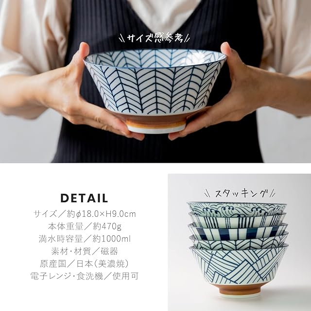 商品名:みのる陶器美濃焼 寿々 180ラーメン丼 縞紋