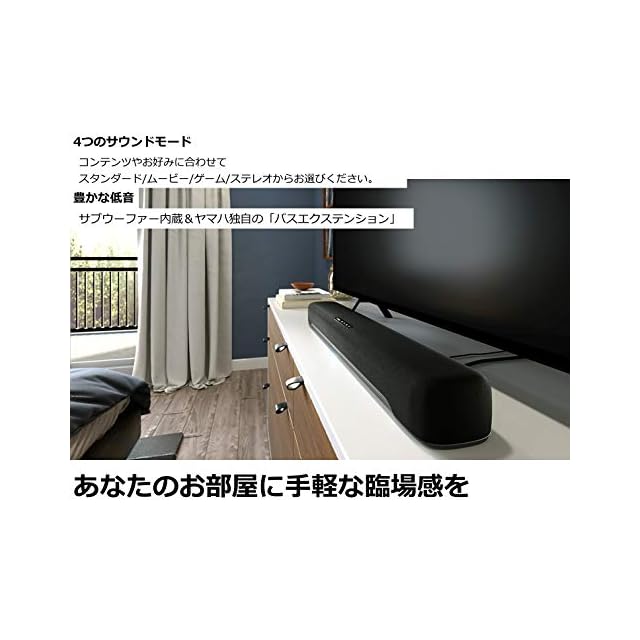 「クリアボイス」や「バスエクステンション」、ヤマハ独自チューニングのサラウンド技術によりテレビの音を聴きやすくグレードアップし、サイズを超えた豊かな低音と臨場感を再現