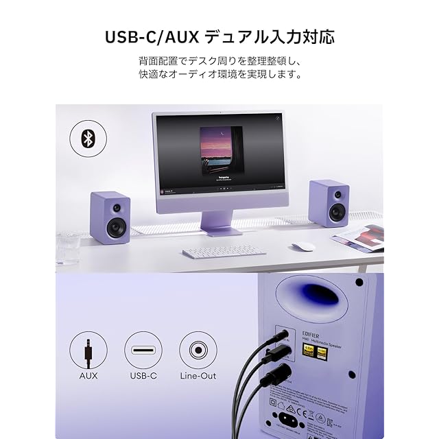 商品名:「VGP2025金賞&コスパ大賞」Edifier M60 マルチメディアスピーカー 66W Bluetooth 5.3 ハイレゾワイヤレス コンパクトなデザイン 専用アプリ スタンド付き USB-C/AUX入力 MDF製 限定色 パープル