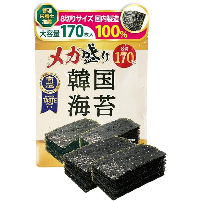 ✅【二つ星受賞 韓国のりメガ盛り170枚!】ITI(国際味覚審査機構)で二つ星を受賞。厳選した初摘み海苔を使用。しっかりした海苔質の(岩海苔のような海苔質)海苔を荒めに漉き、本場の韓国で愛されている多くの穴が空いている海苔に仕上げました。